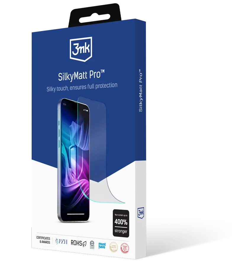 Folosește telefonul fără limite și fără stres! Cu SilkyMatt Pro, ecranul smartphone-ului tău devine mai rezistent la zgârieturi și fisuri chiar și cu... 400%! Acest lucru este posibil datorită structurii multistrat, care include printre altele un strat de bază antișoc cu fiabilitate dovedită în teste. Dacă telefonul tău cade pe o suprafață dură, ajunge în nisip sau se află în același buzunar cu cheile, SilkyMatt Pro va minimiza riscul de deteriorare a ecranului.